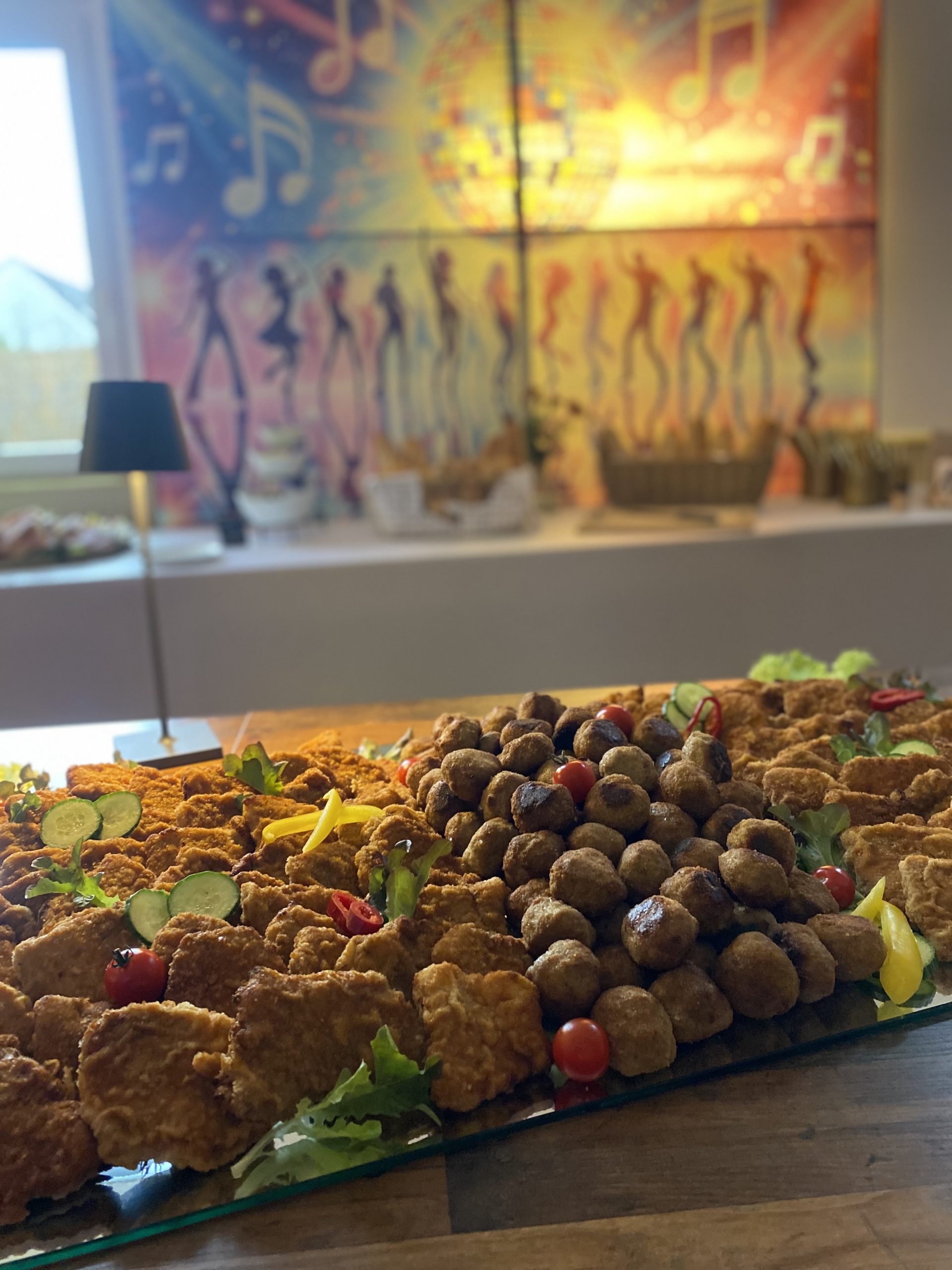 Ein echtes Highlight ist unser hausgemachtes Buffet: frisch zubereitete Spezialitäten, abwechslungsreich, regional und liebevoll angerichtet. Von herzhaften Klassikern bis zu süßen Kreationen stellen wir gemeinsam mit dir ein individuelles Menü zusammen, das deine Gäste begeistern wird.
