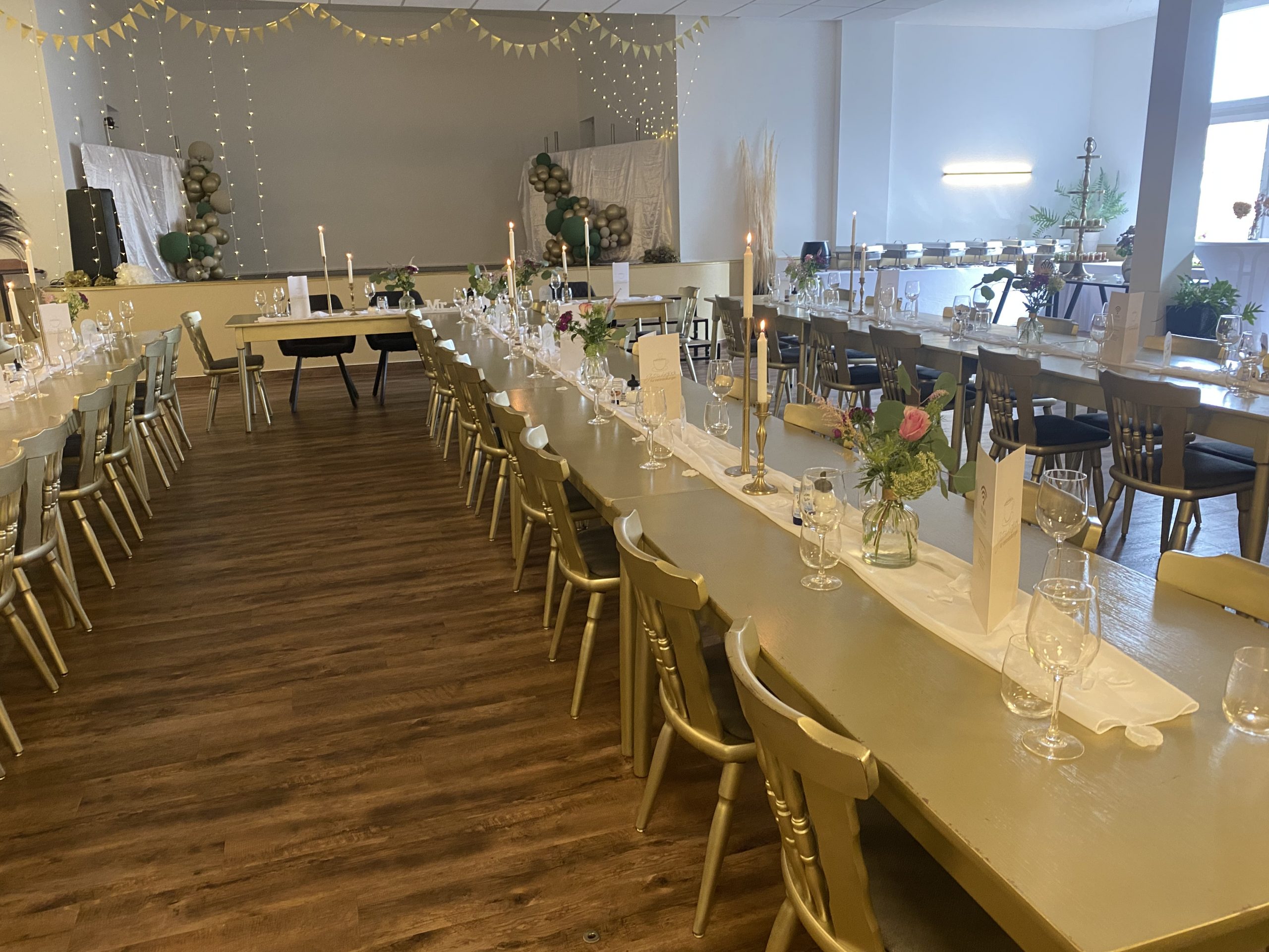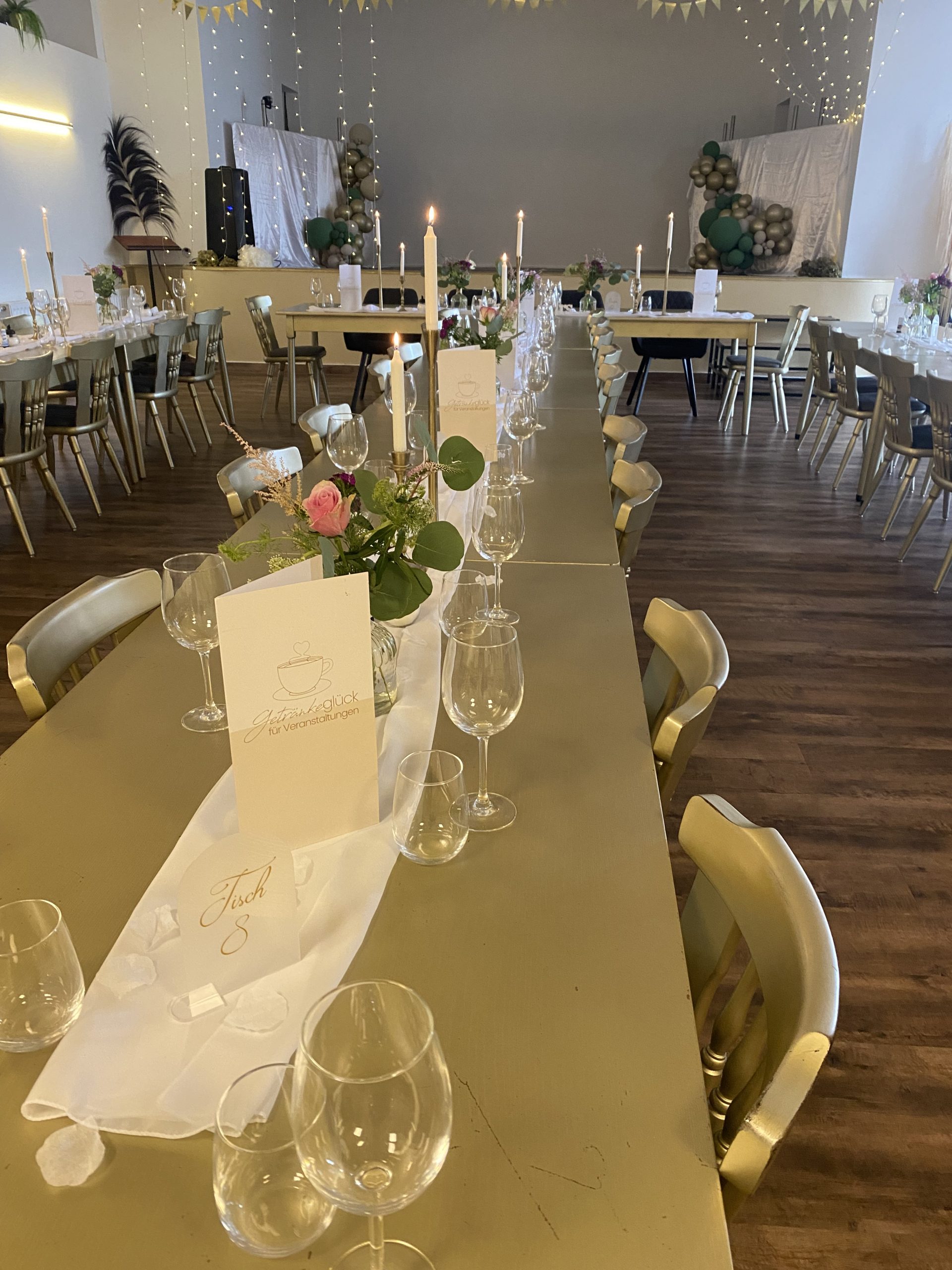 Ob Hochzeit, Geburtstag, Firmenevent oder ein besonderes Familienfest – das Goldstück Café ist die ideale Location für deine Veranstaltung. Mit Platz für bis zu 100 Personen, einer warmen Atmosphäre und viel Liebe zum Detail schaffen wir den perfekten Rahmen für unvergessliche Augenblicke.
